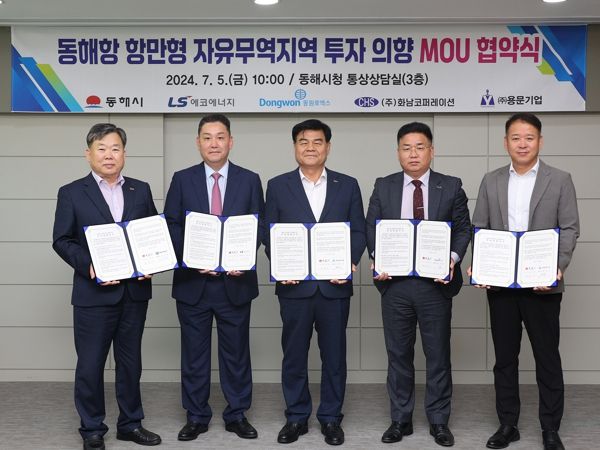 (아름다운교육신문) 동해시 지난 7월 5일 동해시청 통상상담실에서 동해항 및 항만배후지역 활성화를 위한 ‘동해항 항만형 자유무역지역 투자 의향 MOU 협약식’을 개최했다고 밝혔다.
