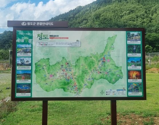 관광안내판에는 청도군 관광안내지도와 최근 관광 트랜드를 반영하여 선정한 ‘청도 관광9경’을 함께 소개하며 체계적인 종합 정보 전달로 관광객 편의를 강화했다.