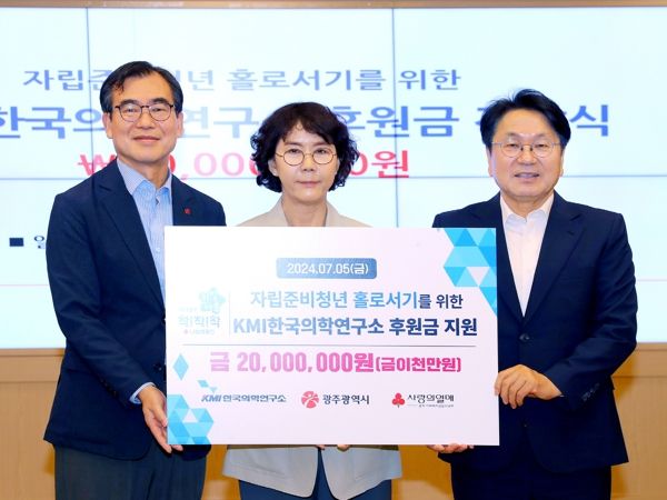 (아름다운교육신문) (재)KMI한국의학연구소가 자립준비청년을 위해 후원금 2000만원을 광주시에 전달했다.