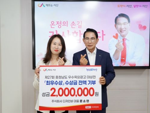(아름다운교육신문) 충남 서산시는 5일 디자인비(Design B)가 제27회 충남 우수옥외광고 대상전을 통해 획득한 최우수상 수상금 200만 원을 기탁했다고 밝혔다.