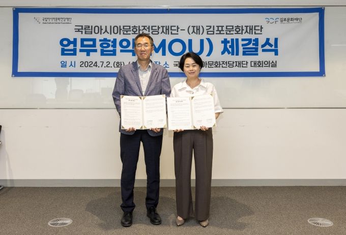 (아름다운교육신문) (재)김포문화재단과 국립아시아문화전당재단은 2일 광주광역시에 위치한 ACC재단 회의실에서 업무협약을 맺고 문화예술 관련 사업을 연계하는 상호 지원과 협력을 약속했다.