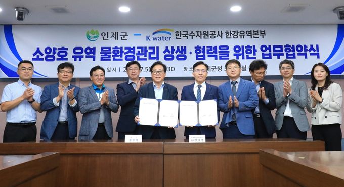 인제군과 한국수자원공사 한강유역본부는 지난 5일 인제군청 소회의실에서 소양호 유역 물환경관리 상생·협력을 위한 업무협약을 체결했다.