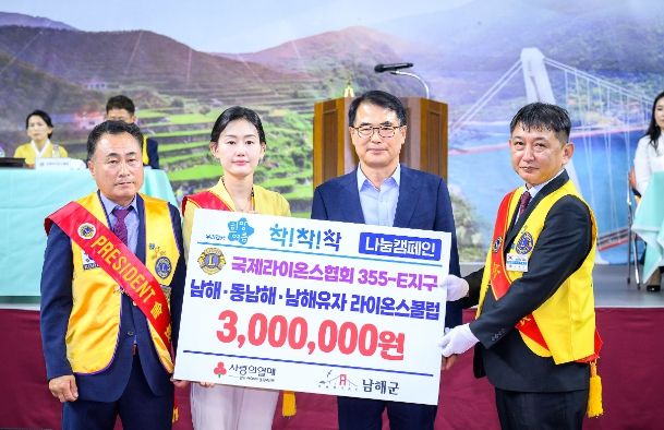 (아름다운교육신문) 남해군은 지난 5일 남해실내체육관에서 국제라이온스협회 355-E지구 남해·동남해·남해유자라이온스 합동 이·취임식이 열린 가운데 이들 단체에서 이웃돕기 성금 300만원을 기탁했다고 밝혔다.