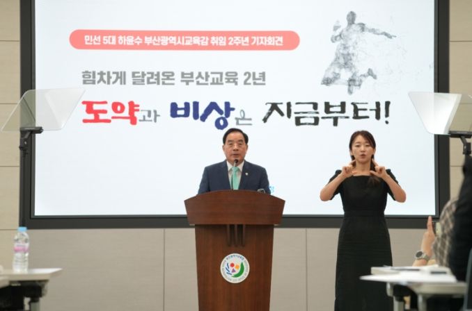 (아름다운교육신문) 부산광역시교육청은 8일 오전 시교육청에서 ‘하윤수 교육감 취임 2주년 기자회견’을 열고 전반기 성과와 향후 추진 정책 등을 밝혔다.