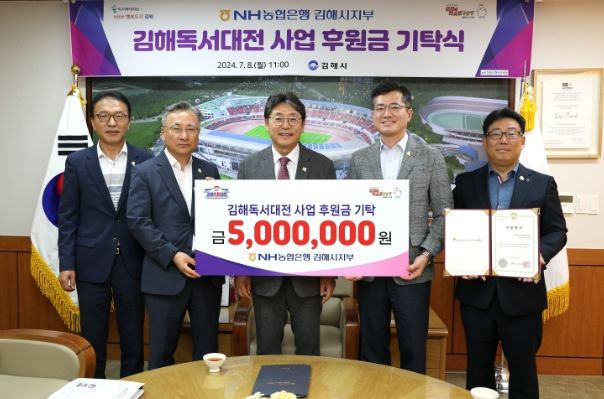 (아름다운교육신문) 김해시는 8일 NH농협은행 김해시지부에서 지역 독서문화 발전과 독서 향유 계층 확대를 위한 김해독서대전 사업 후원금 500만원을 기탁했다고 밝혔다.