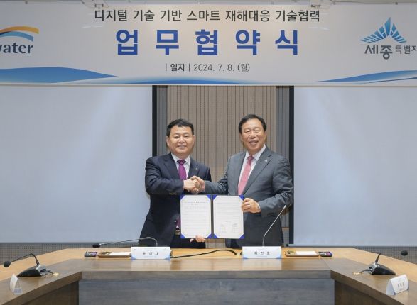 세종특별자치시는 8일 대전 한국수자원공사 4층 임원회의실에서 한국수자원공사와 인공지능(AI) 등 디지털 기술 기반 스마트 재해 대응 기술협력을 위한 업무협약을 체결했다.