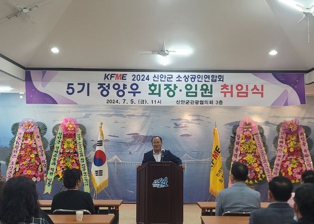 (아름다운교육신문) 신안군 소상공인연합회(회장 정양우)가 지난 5일 신안군 관광협의회 사무실에서 회원 등 30여 명이 참여한 가운데 제5기 회장으로 선임된 정양우 회장의 취임식을 개최했다.