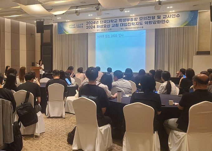 호텔푸르미르 토파즈홀에서 열린 이번 연수는 관내 고등학교 대입진학지도 리더교사와 진로전담교사, 단국대학교 입학팀 등 총 70여 명이 참석했다.