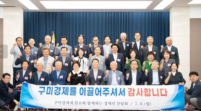 (아름다운교육신문) 구미시는 8일 호텔금오산에서 구미경제를 이끌어 가는 경제계 원로와 전・현직 경제인, 기업인 등 40여 명이 참석한 가운데 간담회를 개최했다.