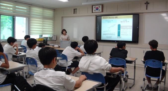 그리고 2,3학년을 대상으로 담임교사가 임장한 상태에서 초청된 전문강사로부터 생명존중 강의를 시청하였다.