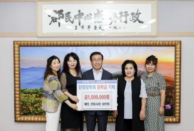 이번 장학금은 매포시장에서 ‘이웃사랑 자선 바자회’를 개최해 얻은 수익금으로 마련돼 더욱 의미가 깊었다.