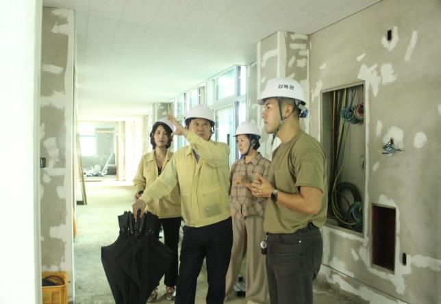이날 충청남도 전지역에 호우특보가 내려진 가운데 윤여준 교육장을 비롯한 관계 교직원들은 ‘특별교실 및 소규모 체육관 증축공사’를 진행중인 시목초등학교를 시작으로, 일선 학교들을 돌아보며 공사장 안전사고 방지 대책 배수로 현황, 누수 점검 등 각 현장의 수해 방지 대비 정도를 점검하고 현장 직원들이 겪는 어려움을 청취했다.