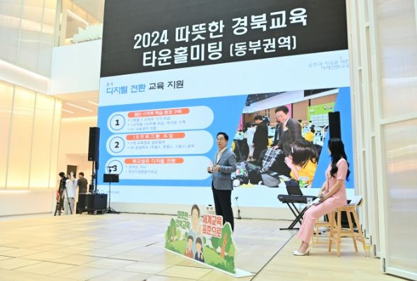 (아름다운교육신문) 경북교육청은 9일 포항시에 있는 포스코 체인지업 그라운드에서 포항, 영덕, 울진, 울릉 등 경북 동부권역 학부모와 지역민 등 100여 명이 참석한 가운데 ‘따뜻한 경북교육 세계교육의 표준으로’를 주제로 2024 포항 타운홀 미팅을 개최했다.