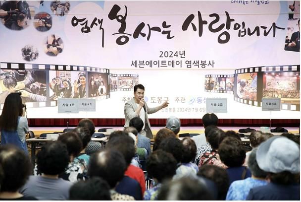 (아름다운교육신문) 도봉구가 지난 7월 6일 ㈜동성제약과 함께 도봉구청 2층 선인봉홀에서 저소득 어르신 200여 명을 대상으로 염색봉사를 진행했다.