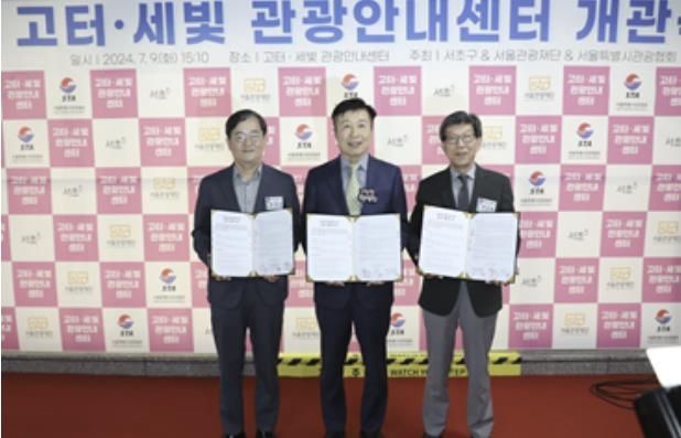 (아름다운교육신문) 서울 서초구는 9일 오후 3시 고속터미널역에서 반포한강공원을 연결하는 지하 공공보행통로 내에 위치한 ‘고터·세빛 관광안내센터’ 개관식을 열고 본격적인 운영에 들어간다고 밝혔다.