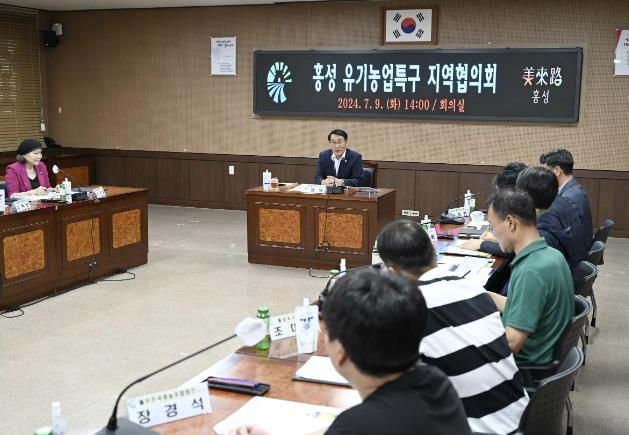 군에 따르면 지난 9일 군청 회의실에서 이용록 홍성군수를 비롯해 관계 부서장 및 관련 기관단체·전문가가 참석한 가운데 홍성 유기농업특구 지역협의회 위원 위촉식과 특구 계획 변경 수립 용역 중간보고회를 개최했다.