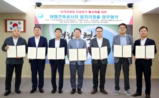 협약 대상 대형건축공사장은 ▲도마·변동 1구역 재개발정비사업 ▲대전 갑천역 공동주택 공사장이며, 주요 내용은 지역 전문건설업체의 하도급 70% 이상 참여 및 입찰 시 지역 전문건설업체 30% 이상 추천, 지역 건설자재 구입 및 건설장비 60% 이상 사용 등이다.