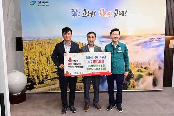 대한전문건설협회 경상북도 고령군협의회(회장 이대원)는 “저출생 문제는 나라의 존립에 영향을 주는 중요한 사안으로, 이번 성금 기탁으로 저출생 문제 해결에 조금이나마 도움이 되었으면 한다”라고 말했다.