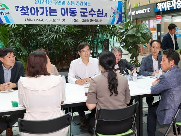 이동군수실에는 영암군 각 부서장들도 함께해 주민이 제기한 건의와 제안을 놓고 설명하는 등 이해를 높이는 시간을 가졌다.