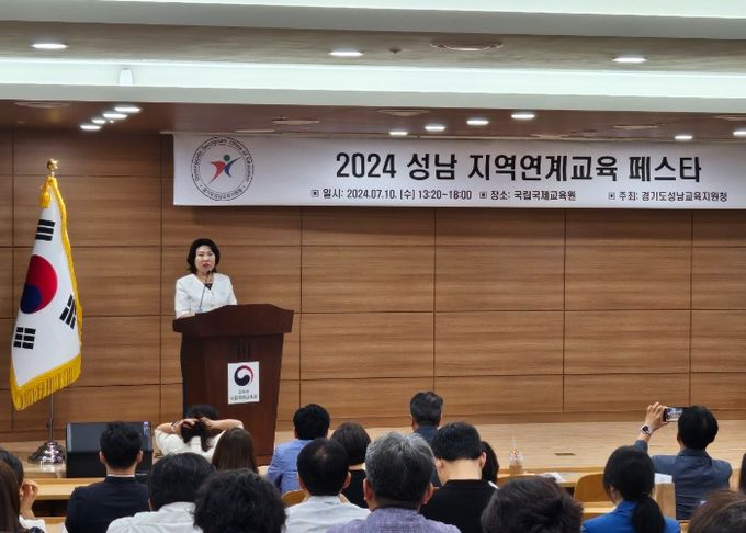 (아름다운교육신문) 성남교육지원청은 7월 10일 국립국제교육원에서 ‘2024 성남 지역연계교육 페스타’를 열었다. 이번 행사는 ‘공유를 꽃 피우다’를 주제로 성남 관내 초·중·고 관리자 및 교원, 경기도 25개 교육지원청 지역연계교육 담당자 등 약 500여명이 참석해 지역협력교육의 새로운 방향성을 탐색하는 자리가 됐다.