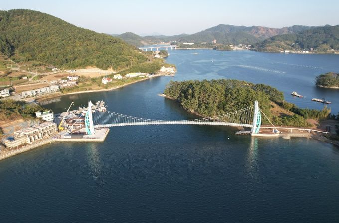 (아름다운교육신문) 하청면 옥계마을 씨릉섬 출렁다리 준공으로 이제 씨릉섬을 걸어서 탐방할 수 있게 됐다.