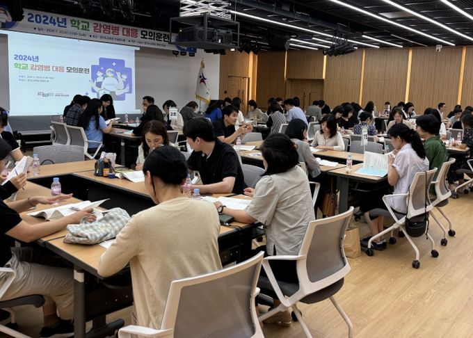 이번 모의훈련은 교육지원청 담당자, 지원청별 선정 보건교사, 보건소 담당자가 참석해 교육(지원)청, 학교, 보건소(유관기관) 연계 훈련으로 진행됐다.