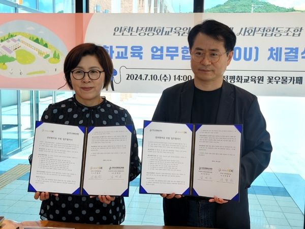 (아름다운교육신문) 인천광역시교육청난정평화교육원은 10일 영상 제작 및 아카이브 전문기관인 모씨네사회적협동조합(대표 전철원)과 ‘평화교육 협력체계 구축을 위한 업무협약’을 체결했다.