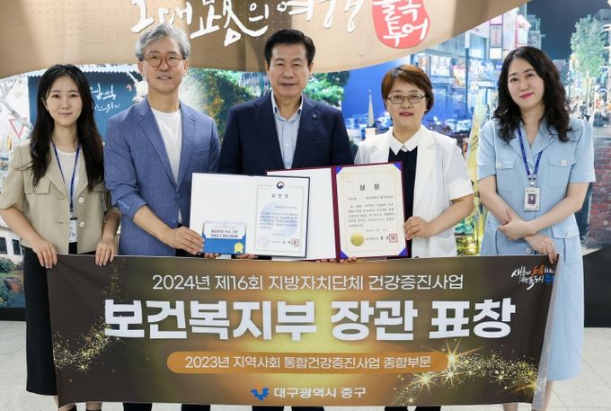(아름다운교육신문) 대구 중구는 보건복지부 주관 ‘제16회 지방자치단체 건강증진사업 성과대회’에서 지역사회 통합건강증진사업 종합부문 우수 지자체로 선정돼 보건복지부장관 표창을 수상했다.