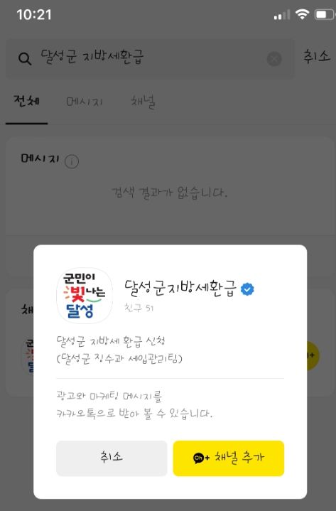이에 따라 달성군은 미환급금을 줄이고 납세자의 편의를 위해 ‘달성군지방세환급’ 카카오톡 채널을 개설했다.