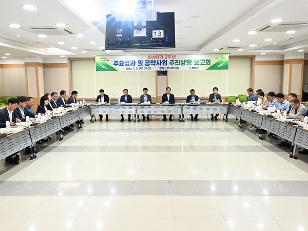 심재국 평창군수 주재로 열린 이날 보고회에서는 부군수, 국장, 부서장 등 40여 명이 참석해 민선 8기 출범 2년을 맞아 그간 주요 성과를 공유하고, 공약사업의 방향과 개선 방안 등에 대한 심도 있는 의견을 나눴다.