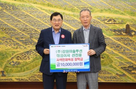 (아름다운교육신문) (주)강원이솔루션에서 11일 미래 경주지역을 이끌어갈 인재육성과 지역의 교육발전을 위해 장학금 1천만원을 (재)경주시장학회에 기탁했다.
