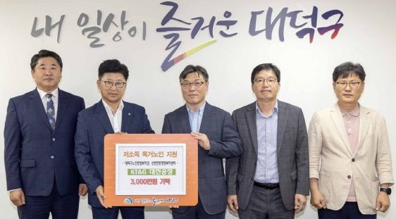 (아름다운교육신문) 대전 대덕구는 11일 KT&G 대전공장으로부터 지역 내 저소득 홀몸 어르신들을 위한 후원금 3000만원을 기탁받았다고 밝혔다.