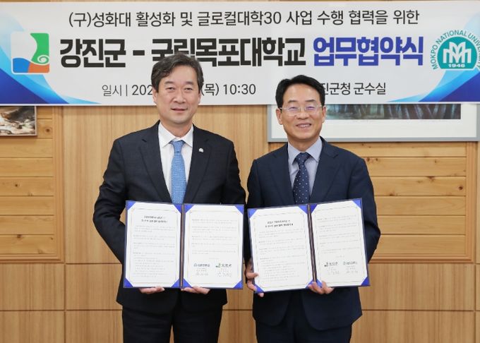 강진군이 11일 목포대와 옛 성화대 활성화 및 글로컬대학 30 관련 업무 협약을 체결하는 자리를 마련했다.