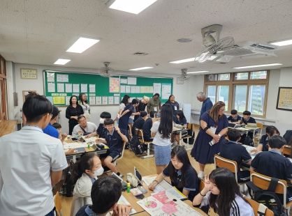 미국 교육행정가 방문단은 11일 오전 경주 도착 후 국제교류 운영학교인 화랑중학교를 방문하여 학교 현황 소개와 기술실․정보실 등을 둘러보고, 국어와 일본어 수업 등을 참관했다.