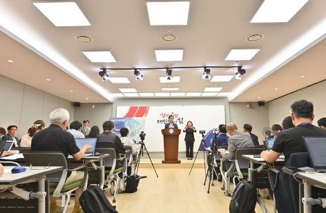 김태흠 지사는 11일 도청 프레스센터에서 기자회견을 열고 “가로림만 국가해양생태공원 조성 사업이 기재부 재정사업평가위원회에서 타당성 재조사를 통과하지 못했다”며 “도에서는 이 사업을 중단하지 않고 계속 추진할 것”이라고 밝혔다.