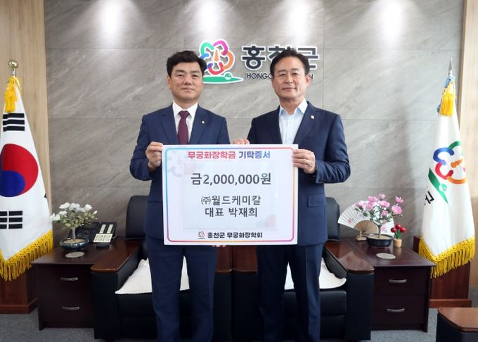 (아름다운교육신문) ㈜월드케미칼은 7월 11일 홍천군청을 방문하여 홍천군 인재 육성을 위한 무궁화장학금을 200만 원을 기탁했다.