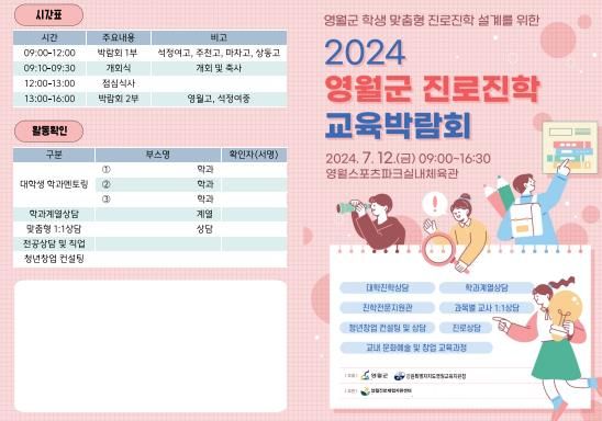 2024 영월군 진로진학 교육박람회는 영월군, 강원특별자치도교육청, 영월교육지원청이 주최하고 시멘트산업사회공헌재단 영월기금관리위원회가 후원했다.