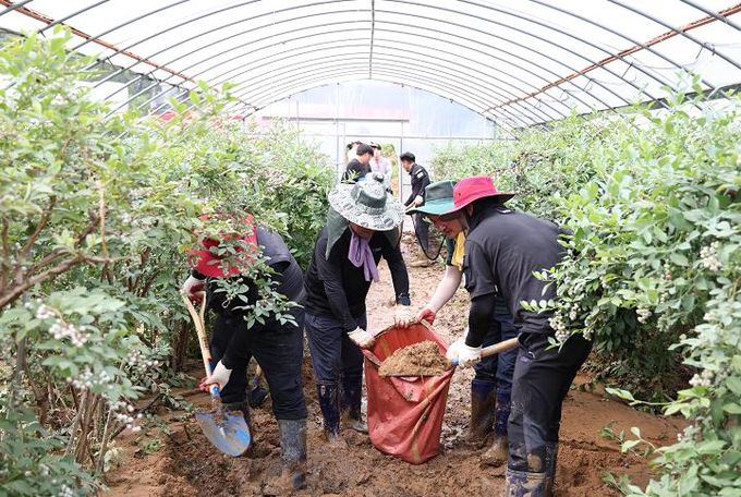 부여군 양화면은 지난 8일부터 10일까지 3일간 450mm 이상의 폭우로 침수 피해가 심각한 것으로 알려졌으며, 이에 청양군은 오전부터 블루베리 농가를 방문해 시설하우스 내 토사물 제거에 힘을 쏟으며 구슬땀을 흘렸다.