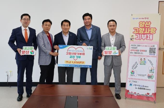 이번 기탁식에는 이상훈 밀양시지부장, 강정환 밀양시 조합운영협의회 의장 등이 참석했고, 밀양 농축협 임직원들은 양산시와 밀양시의 상호발전을 위해 한마음 한뜻으로 기부에 동참하고자 자발적 참여로 마련됐다.