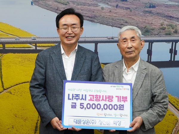 (아름다운교육신문) 전라남도 나주시는 ㈜대륜상운 정찬준 회장이 고향사랑기부금 500만원을 기탁했다고 12일 밝혔다.