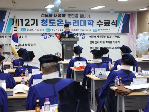 김하수 군수는 제12기 청도온누리대학의 수료식을 축하하며 “배움에 주저함이 없는 어르신들의 열정에 감동했다.”며, “교육을 통한 의식의 선진화를 통해 청도를 발전시키는 데 힘을 더해달라.”라고 말했다.