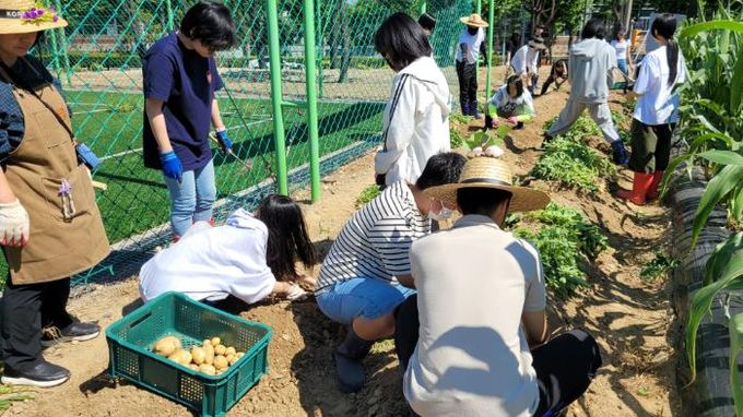 꿈나래교육원의 이번 학기 기부 작물은 감자, 옥수수, 애플수박, 가지, 애호박, 깻잎, 상추, 고추 등이었다.