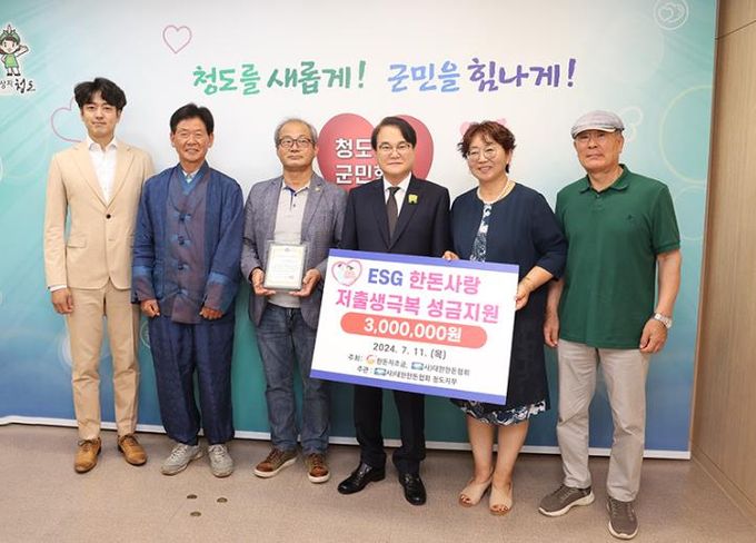 (사)대한한돈협회 박종우 경북도협의회장과 이종찬 청도군지부장은 “저출생 문제에 대해 깊이 공감하며, 저출생 극복이 미래 농촌, 축산을 살리는 길이라며, 작지만 보탬이 되길 바란다”고 밝혔다.