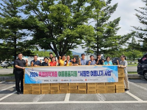 김천시지역사회보장협의체와 경북공동모금회가 함께 공동 기획한 시원한 여름나기 물품 지원 사업은 2017년부터 매년 여름마다 진행하고 있으며, 올해 여름나기 키트는 인견이불, 유산균, 벌레퇴치 세트, 미숫가루, 쿨스카프 등 10만 원 상당의 물품으로 다양하고 알차게 구성돼 있다.
