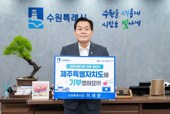 (아름다운교육신문) 이재준 수원시장이 ‘고향사랑기부 인증 챌린지’에 참여해 제주특별자치도에 고향사랑기부금을 기탁했다.