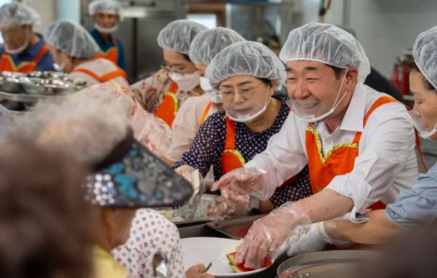 (아름다운교육신문) 이재영 증평군수가 초복을 맞아 15일 노인복지관에서 지역 내 어르신들을 위한 배식 봉사활동을 펼쳤다.