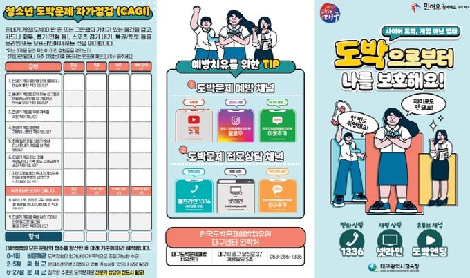 이 밖에도 대구시교육청은 ▲교과 연계 도박 예방 교육, ▲글로벌 경제금융교육을 통한 학생·교사 대상 연간 의무교육, ▲자녀교육 가이드북 활용 예방 교육, ▲도박 사안 발견 시 전문기간 연계 치유·Wee클래스를 통한 재발 방지 추수 교육, ▲가정통신문 발송 등 학생 도박 예방과 대응을 위해 꾸준히 노력하고 있다.