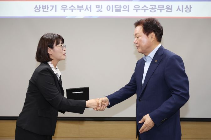 이번달 성과 우수공무원은 3명으로, 정책기획관 김문정 주무관, 에너지산업과 박수연 주무관, 농업인력자원관리원 진인영 주무관이 영예를 안았다.