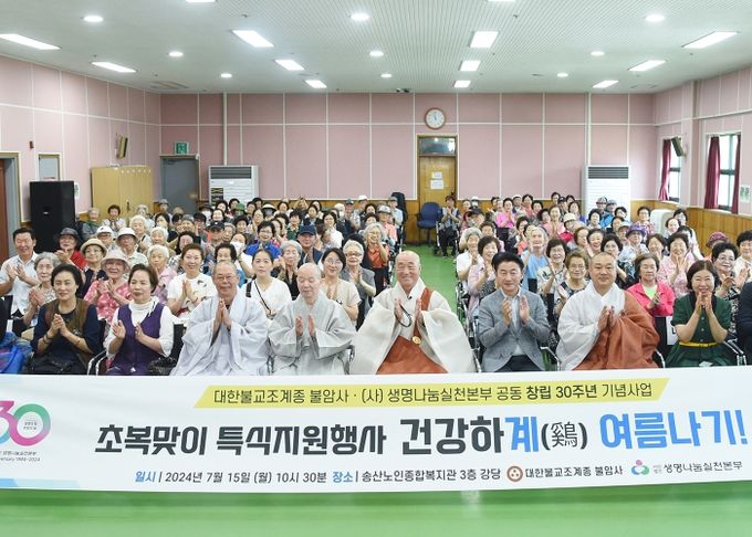 김동근 시장은 인사말을 통해 “초복맞이 행사를 위해 애써주신 일면 큰스님과 생명나눔실천본부, 복지관 관계자분들께 감사드린다”며, “어르신들이 맛있는 삼계탕을 드시고 무더운 여름철을 건강하게 보내시길 바란다”고 말했다.