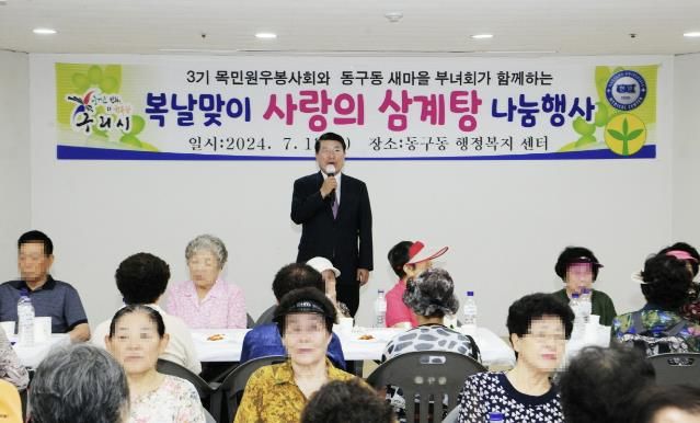(아름다운교육신문) 구리시 동구동 행정복지센터는 7월 13일 행정복지센터 생활체육실에서 제3기 목민원우봉사회 주관으로 지역 어르신 250여 명을 모시고 ‘사랑의 삼계탕 나눔 행사’를 개최했다.